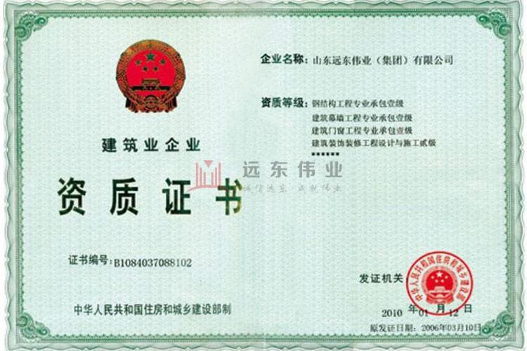 建筑門(mén)窗行業(yè)資格證書(shū) 建筑工程施工總承包叁級(jí) 市政公用工程施工總承包叁級(jí) 建筑機(jī)電安裝工程專業(yè)承包叁級(jí) 古建筑工程專業(yè)承包叁級(jí) 環(huán)保工程專業(yè)承包叁級(jí) 門(mén)窗備案證明 全國(guó)工業(yè)產(chǎn)品生產(chǎn)許可證 鋼結(jié)構(gòu)資質(zhì) 省級(jí)守合同重信用企業(yè) 建筑業(yè)企業(yè)資質(zhì)證書(shū) 證書(shū) 先進(jìn)企業(yè) 五星級(jí)單位 省級(jí)守合同重信用企業(yè) 功勛企業(yè) 工程質(zhì)量泰山杯獎(jiǎng) 常務(wù)理事單位 AAA級(jí)信用企業(yè) 中國(guó)建設(shè)工程魯班獎(jiǎng) 泰山杯獎(jiǎng)杯 國(guó)家優(yōu)質(zhì)工程獎(jiǎng) 山東省建設(shè)工程優(yōu)質(zhì)結(jié)構(gòu)杯獎(jiǎng) 山東省建筑工程質(zhì)量泰山杯工程 共45記錄 ?上一頁(yè) 1 2 3 下一頁(yè)?