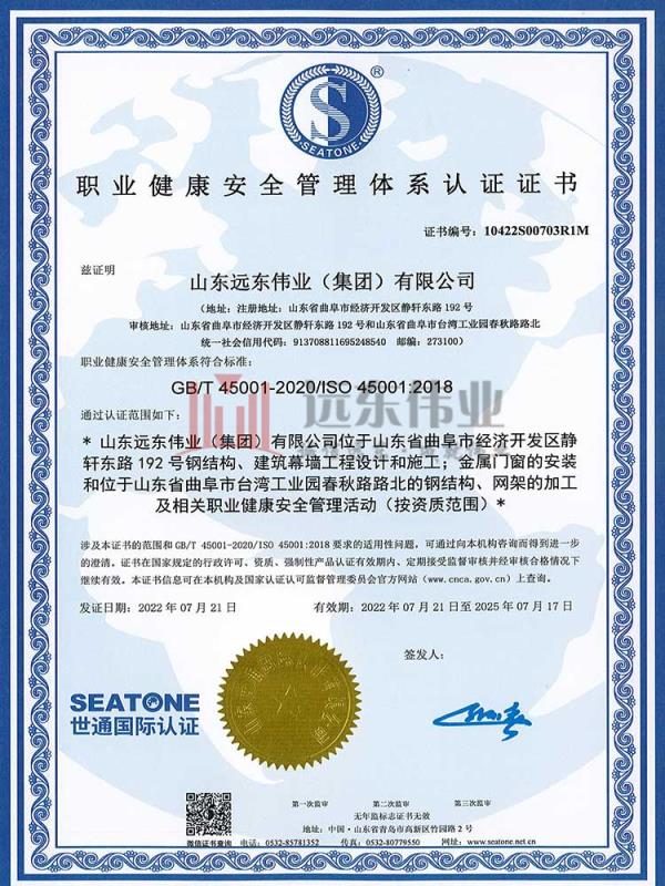 職業(yè)健康安全管理體系認證證書 2023-09-13 09:25:44 上一條:重合同守信用企業(yè) 下一條: 環(huán)境管理體系認證證書 相關資訊 夯實基礎·砥礪奮進 | 重慶龍... 正在施工的和新承接的項目情... 近年完成的類似項目情況表... 關于加強項目部農民工工資支... 熱門推薦 黃海明珠中心 濟寧運河城 開發(fā)區(qū)萬達廣場 中國重汽濟寧商用車有限公司