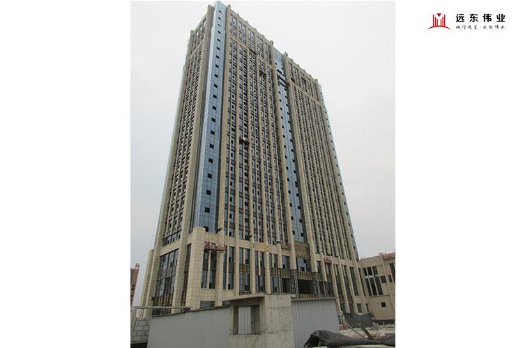 綠業(yè)元集團豫東農(nóng)資物流園區(qū)綜合樓位于河南省周口市扶溝縣文化西路以北,金海路以西。該項目建筑包括主樓、裙房,建筑高度99.95米,標準層高4.0米,地下1層,地上23層,裙樓地面以上3層。本工程外裝飾主要涉及豎明橫隱玻...