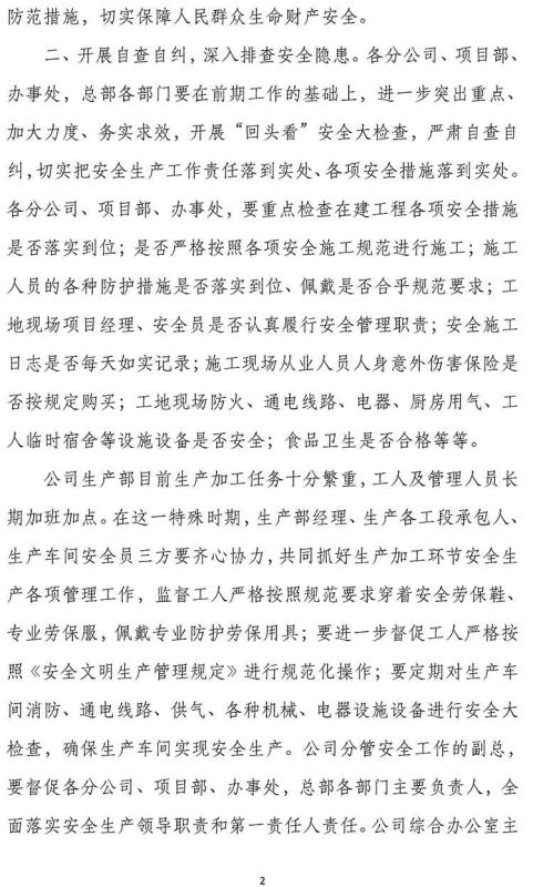 關(guān)于進(jìn)一步加強(qiáng)安全生產(chǎn)工作的通知 2023-09-11 16:39:52 上一頁(yè):關(guān)于加強(qiáng)項(xiàng)目部農(nóng)民工工資支付保障工作的通知 下一頁(yè): 關(guān)于印發(fā)項(xiàng)目部農(nóng)民工工資支付具體辦法的通知 相關(guān)資訊 夯實(shí)基礎(chǔ)·砥礪奮進(jìn) | 重慶龍... 正在施工的和新承接的項(xiàng)目情... 近年完成的類似項(xiàng)目情況表... 關(guān)于加強(qiáng)項(xiàng)目部農(nóng)民工工資支... 熱門推薦 黃海明珠中心 濟(jì)寧運(yùn)河城 開(kāi)發(fā)區(qū)萬(wàn)達(dá)廣場(chǎng) 中國(guó)重汽濟(jì)寧商用車有限公司