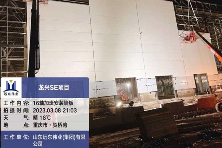 科學施工鑄精品,管理創(chuàng)優(yōu)良。為保障工程能夠按時、按質交付,山東遠東偉業(yè)集團重慶龍興SE項目部全員履職,上下團結一心,憑借堅強的毅力、過硬的技術能力,攻克一個又一個施工過程中出現的難點,順利進行了主體墻面和屋面的結構施工,取得了工程建設的階段性勝利。