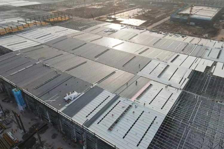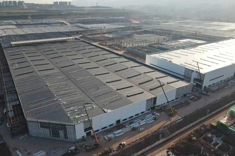 山東遠東偉業(yè)集團重慶龍興SE項目部所負責的總裝一車間屋蓋總面積8.54萬平方米,橫向寬度為168米,縱向長度為512米。